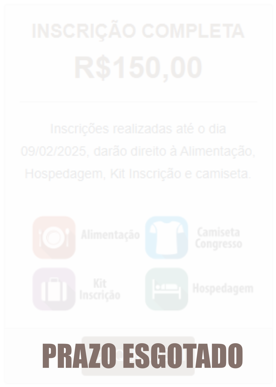 Inscrições realizadas até o dia 17/02/2026, darão direito à Alimentação, Hospedagem e Kit Inscrição.